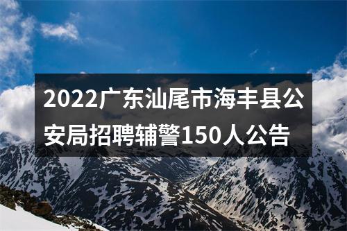 为维护海丰县社会政治和治安稳定,推进平安海丰建设,经县委、县政府同意,海丰县公安局决定面向社会公开招聘警务辅助人员150名。现将有关事项公告如下: